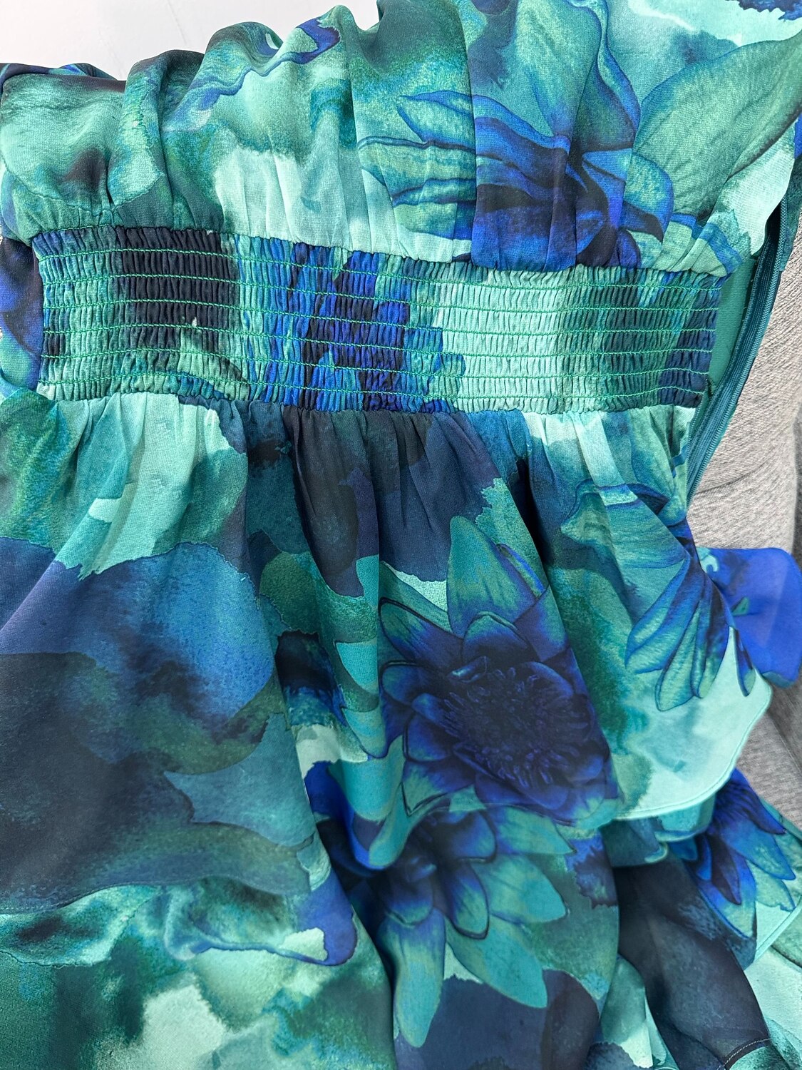 Received endless compliments on the watery floral look. Received endless compliments on the watery floral look.