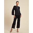 Ensemble chemise et pantalon à poches assortis en mousseline de soie modale pour femme, manches illusion, pour sortir, rendez-vous, travail, printemps, été, automne |