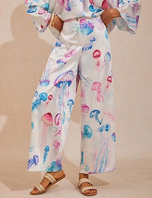 pantaloni floreali in raso setoso con motivo floreale Hawaii Palm