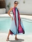 abito lungo da vacanza in raso setoso con stampe astratte.