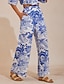 pantaloni a gamba larga in raso setoso con fiori primaverili