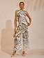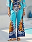 Satin Folk Print Magyar Sleeve Deep V Neck Jumpsuit Folk Print Satin Magyar Jumpsuit