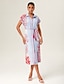 Striped Embroidered Sleeveless Mid length Dress