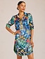 abito a camicia dritto in raso setoso stile festa selvaggia nella giungla