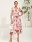 Per donna Abito Midi Vestito in Chiffon Elegante Manica a Palloncino Matrimonio Ospite di nozze Quotidiano Vestibilità regolare Floreale Mezza Manica Scollo a V Rosa Estate Primavera Autunno