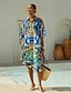 Abstract Floral Slub Linen Three Quarter Sleeve Shirt Vacation