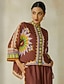 Satin Folk Print Magyar Sleeve Deep V Neck Jumpsuit Folk Print Satin Magyar Jumpsuit