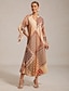 abito lungo da vacanza in raso con scollo a V e maniche lunghe, stampa hawaiana