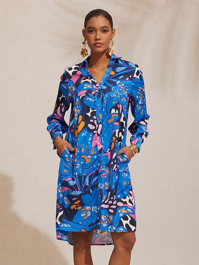 Collo a camicia; Abbottonatura frontale; Spacco; Maniche lunghe; Stampa floreale; Colorblock