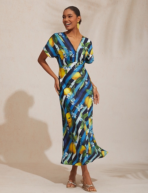Elastic Satin Mermaid Skirt Bold Print