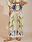 Vårblomstrede silkemyke satengbukser med vide ben