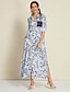 Botanical Print Satin Dolman Maxi Dress