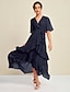 Mismatched Ruffle Sleeve Chiffon Maxi Dress