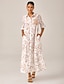 Abstract Floral Knot Front Flared Sleeve Maxi Dress