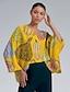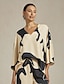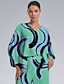 Abstract Satin Dolman Sleeve V Neck Blouse