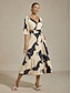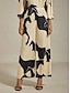 Klassisk abstrakt fargeblokktrykk, løs silhuett, glatt satengstoff, ermedesign i ett stykke.
