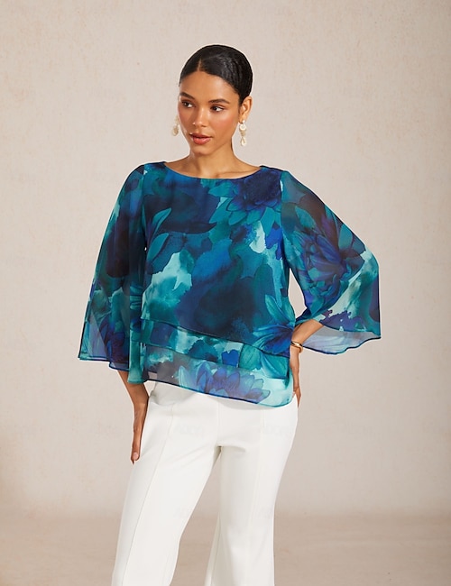 Botanical Paisley Layered Chiffon Blouse