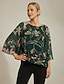 Satin Abstract Floral Stand Collar Puff Sleeve Shirt