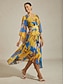 Decote em V, estampa floral abstrata, blocos de cores brilhantes, adequado para uso casual diário e passeios de férias