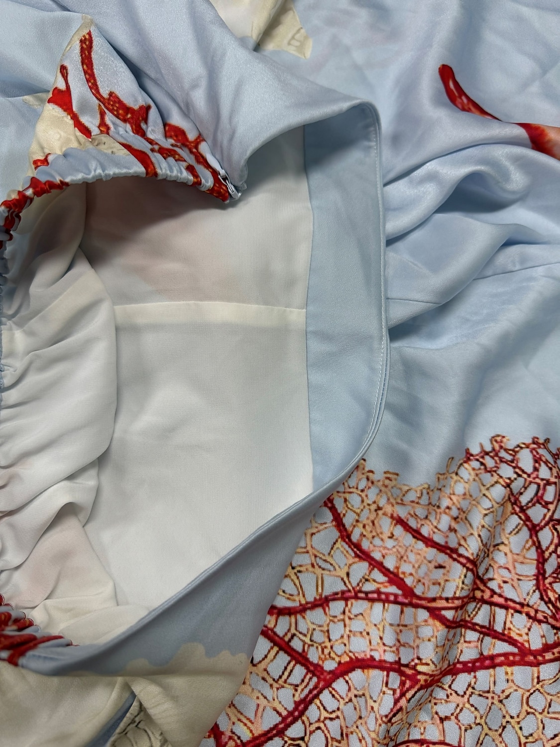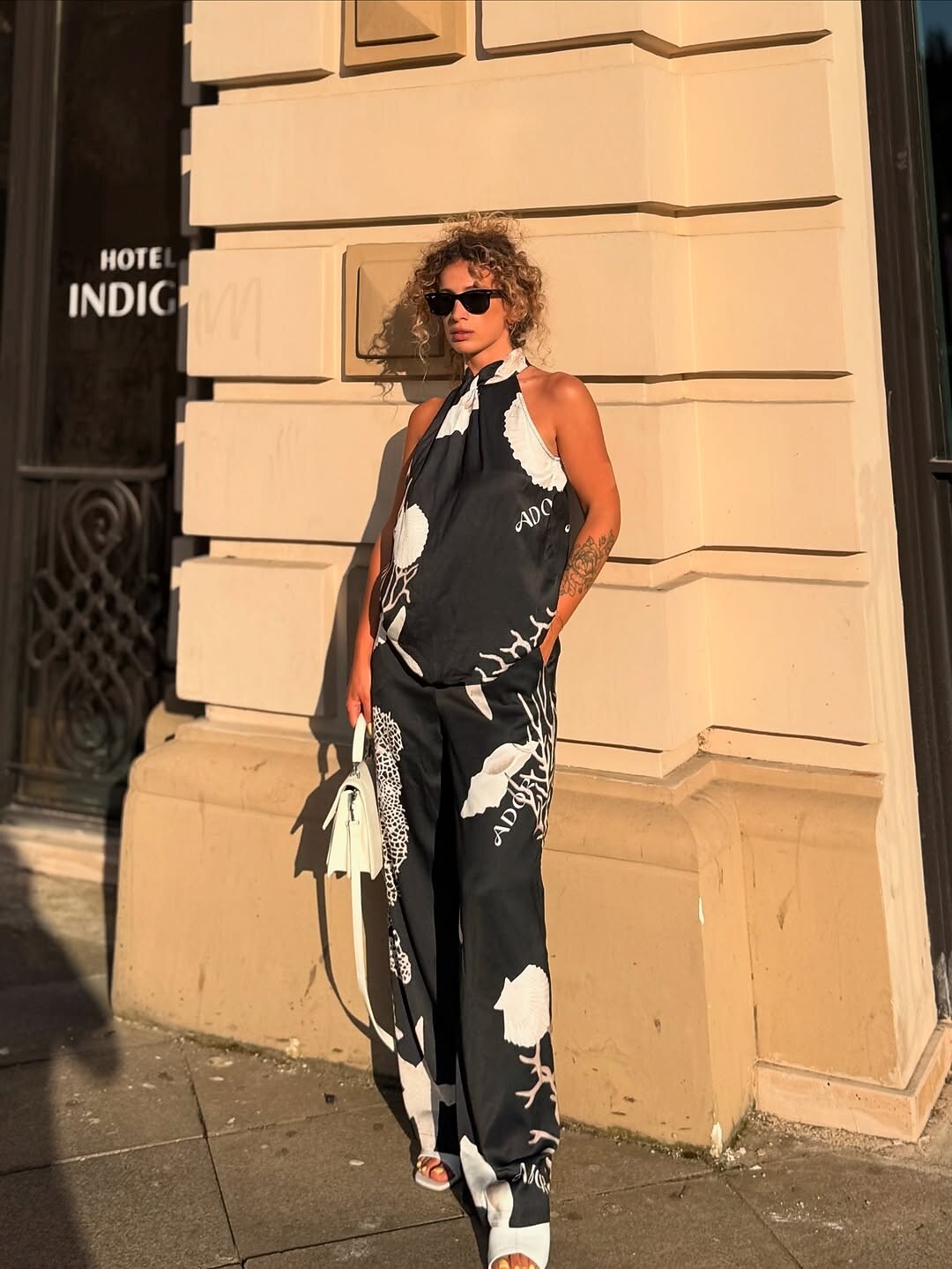 This vacation set is perfect for future warm days with its smooth satin fabric and relaxed fit that feels so comfortable. This vacation set is perfect for future warm days with its smooth satin fabric and relaxed fit that feels so comfortable.