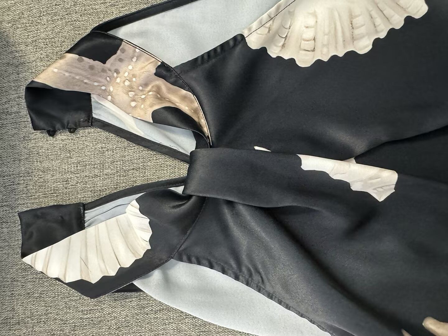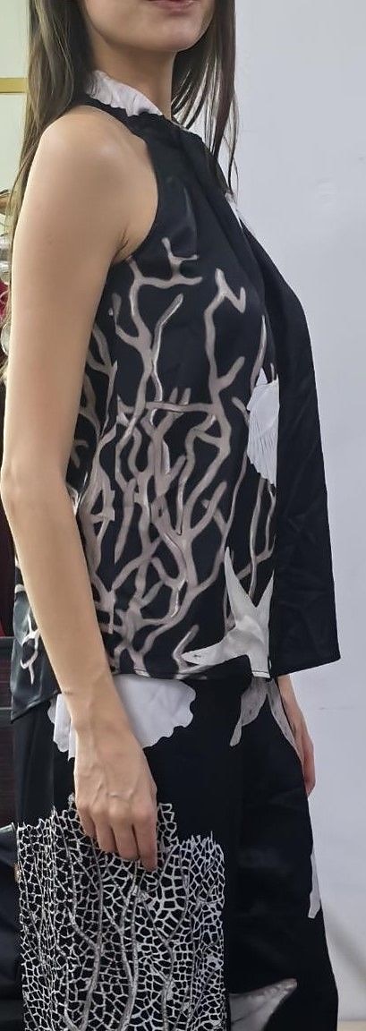 This black set is very stylish, and the fabric feels comfortable. I love the print, and the black color is definitely more slimming. This black set is very stylish, and the fabric feels comfortable. I love the print, and the black color is definitely more slimming.