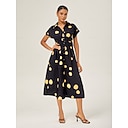 Mulheres Feminino Vestido casual Preto Manga Curta Bolinhas Verão Colarinho de Camisa Férias XS S M |